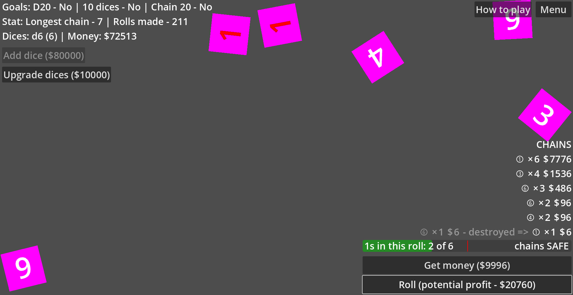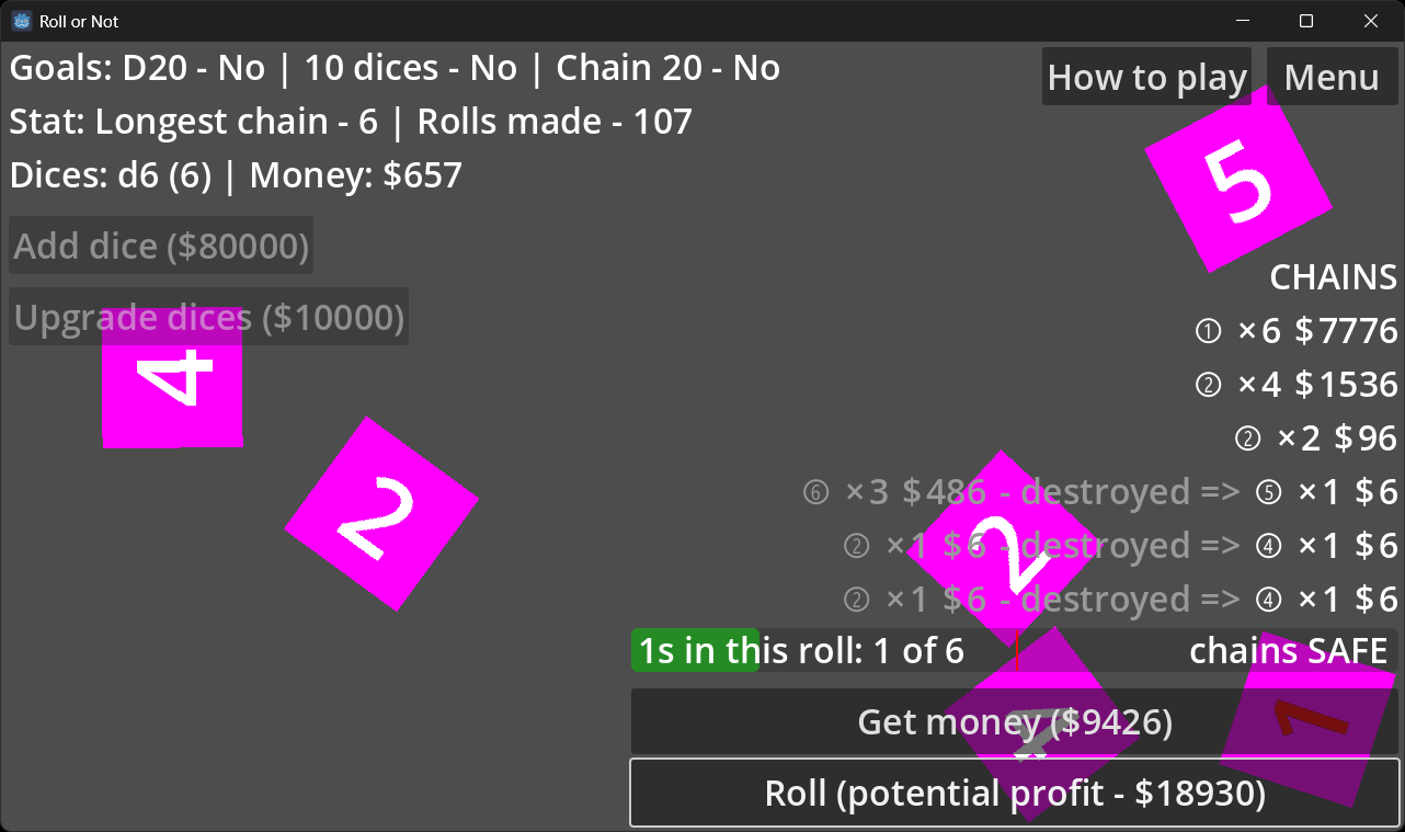 - To explore Godot - I previously worked mostly with Python, so this project was a hands-on way to learn Godot from scratch. No third-party plugins are used — dice mechanics, chains, profiles, and achievements are all implemented manually.